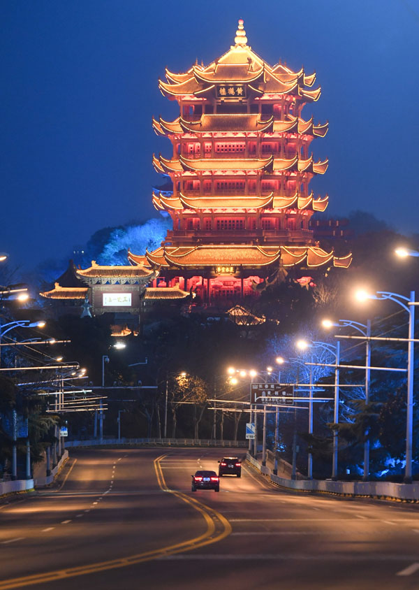 这是2月23日晚拍摄的武汉黄鹤楼夜景。新华社记者 陈晔华 摄